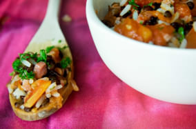 La recette est pour 4 personnes. Si vous destinez ce plat en « primo » (entrée), réduisez les quantités de moitié. En variante, on peut mettre un peu de riz sauvage comme sur la photo. Cette dernière a été réalisée par Naomi (visitez son site de photographies).